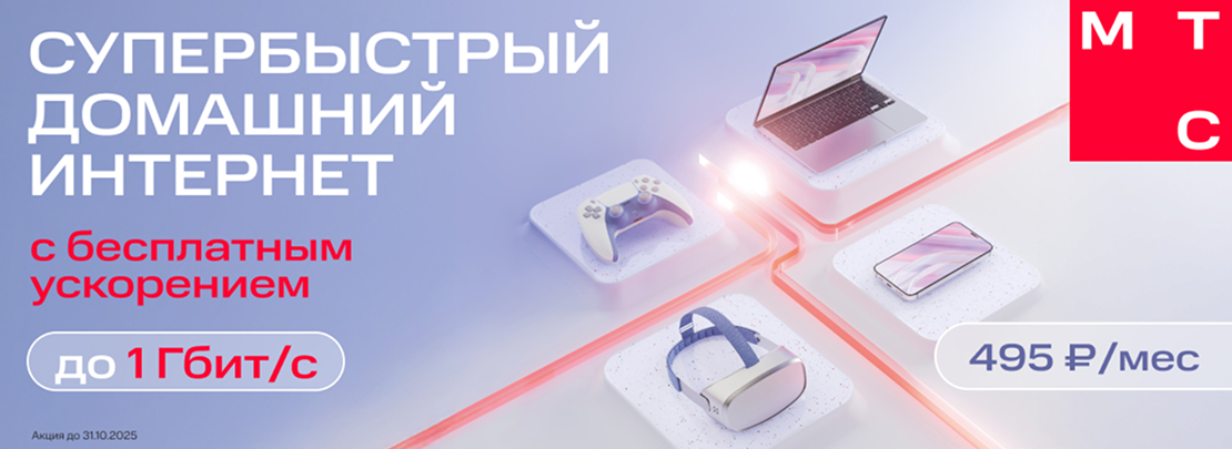 Подключите бесплатное ускорение сейчас и экономьте на самом быстром интернете от МТС в течение года!